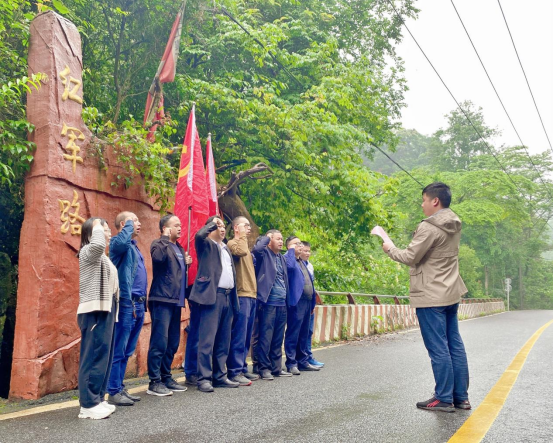 沈纪宝同志带领全体党员重温入党誓词 5月22日,一场特别的党员过“政治生日”活动在绥宁县黄桑红军路碑前举行。 “我志愿加入中国共产党... ...”,在本月过“政治生日”的代表中共绥宁县行政审批服务局支部党员沈纪宝同志铿锵有力的领誓中,党员们精神抖擞的举起充满力量的右手,目光坚韧的看着前方,跟着领誓人一字一句的重温着入党誓词,在这份庄严的承诺下,不断激励党员不忘初心,牢记使命。