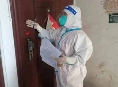 在这里,何海燕同志跟队员们一起,天亮就出门,经常兜里揣一块面包,到中午了还没空吃,晚上等别人休息了,她们还在查漏补登信息。有一次她走访到邻居家,发现其家中大米告急,何海燕转身就把自家的米扛了一袋送上门,邻居婉拒她,何海燕不容分地说道:“我天天在外面跑,家里一天吃不了多少米,你赶紧煮给孩子吃吧”。不分昼夜的超负荷工作,让年近50岁的何海燕脊椎隐隐作痛,经常直不起腰,还伴随着头晕、脚麻,但她不敢懈怠,消杀、测温、录信息、上户采样本,一样不漏。实在干不动了,她就给自己一个微笑说:“这点事算什么,睡一觉起来就好了!”