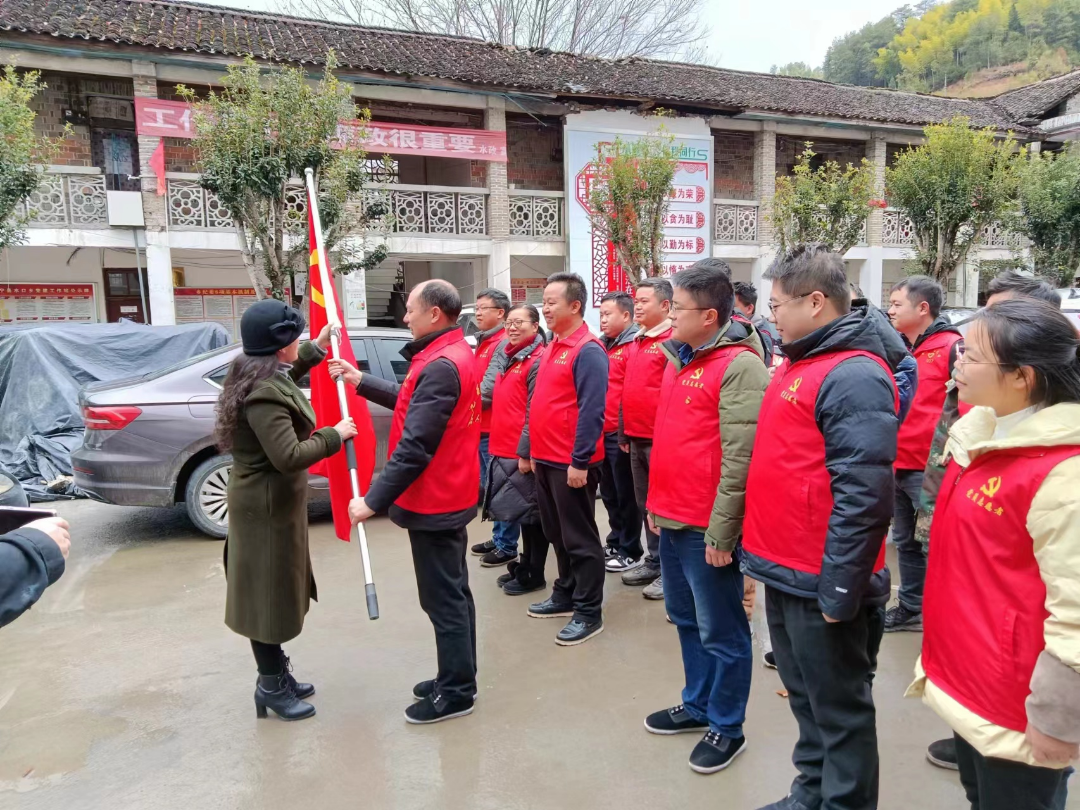 宣讲会结束后,在乡政府操场举行了水口乡党员志愿服务队授旗仪式。