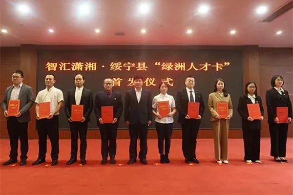 2022年,智汇潇湘·绥宁县“绿洲人才卡”首发仪式上,县委书记佘芝云为全县首批高层次人才代表颁卡。 构建人才工作新格局。强领导建机制。始终坚持党对人才工作的全面领导,建立健全县委人才工作领导小组会议、联席会议、“一事一议”、督查通报、述职评议考核等制度,形成党委统一领导、组织部门牵头抓总、职能部门各负其责的人才工作格局。明责任聚合力。全面压实“一把手”抓“第一资源”责任,将党委(党组)书记抓人才工作与基层党建述职评议考核一并进行,确保人才工作抓紧抓实。紧紧围绕《绥宁县绿洲人才行动计划(试行)》《关于进一步完善县委人才工作领导小组运行机制的意见》,明确24家县委人才工作领导小组各成员单位职能职责,形成人才工作责任明晰、齐抓共管的良好格局。优保障强动能。成立人才发展服务中心,配齐配强人才工作力量,设立800万元/年的人才发展专项基金,为各类人才提供补贴、住房、服务等各方面保障。完善人才发展机制,健全政府、社会、单位多元化人才投入机制,综合运用财政、税收、金融等多种支持手段,更好地为各类人才加油赋能。