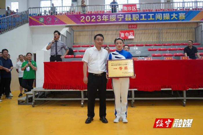 6月29日,以“凝聚民族力量、创建国家卫生县、共享绿色健康生活”为主题的绥宁县2023年职工工间操大赛在县民族体育馆成功举办。县领导袁子玖、罗青松、彭遵礼、伍丹丹出席开幕式并为获奖代表队颁奖。来自全县各乡镇、市属县直各机关、企事业单位36支代表队850多名干部职工参加比赛。 县人大常委会党组副书记、副主任、县总工会主席袁子玖在致辞中指出,生命在于运动,体育改变生活。工间操活动是全面贯彻落实《全民健身条例》的实际行动,举办这次比赛目的在于进一步丰富和活跃广大职工业余文化体育生活,不断提升我县职工群众健康水平,推动形成健康的工作和生活方式。希望以这次大赛为契机,积极贯彻落实党的二十大精神,深入开展全民健身活动,为推进我县创建国家卫生县提振精气神,为建设“美丽绥宁、活力绥宁、幸福绥宁”作出更大的贡献。 副县长彭遵礼宣布大赛开幕。 本次大赛由县总工会、县文化旅游广电体育局主办,县全民健身服务中心协办。开幕式结束后,县芙蓉学校作为我县优秀团队、县文化旅游广电体育局作为主办方分别进行了现场展示表演。随后各参赛队按抽签顺序依次上场参赛。 比赛现场,参赛队员身着统一服装,迈着整齐的步伐进入场地,在赛场上个个热情高涨、精神饱满,伴随着欢快的节奏,踏着轻松的节拍,伸展、弯腰、踢腿、跳跃,每个动作都标准到位、步伐有力,将工间操的力与美展现得淋漓尽致,展示了职工昂扬向上、奋发有为的精神风貌,彰显出工间操的力量与美感,体现了参赛队伍的激情与活力,赢得现场观众的阵阵掌声。 本次比赛特邀专业裁判团队,严格按照比赛规则从各参赛队的动作完成、队列队形、精神状态、表演与团队精神等方面进行综合评判。经过紧张角逐,县政协、县统战部、县网信办联合队勇夺一等奖;县财政局、县人民法院荣获二等奖;团县委、县信访局、绥宁产业开发区联合队和长铺镇、县融媒体中心获得三等奖。 此次活动将进一步引导全县广大职工增强健身意识、提高身体素质,展现健康向上的精神风貌,做到快乐工作、健康生活。 |