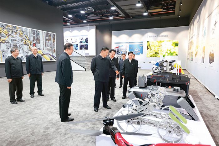二十一 中国式现代化坚持独立自主、自力更生,依靠全体人民的辛勤劳动和创新创造发展壮大自己,通过激发内生动力与和平利用外部资源相结合的方式来实现国家发展,不以任何形式压迫其他民族、掠夺他国资源财富,而是为广大发展中国家提供力所能及的支持和帮助。 (2023年2月7日在新进中央委员会的委员、候补委员和省部级主要领导干部学习贯彻习近平新时代中国特色社会主义思想和党的二十大精神研讨班上的讲话) 2023年10月10日至13日,中共中央总书记、国家主席、中央军委主席习近平在江西考察。这是11日上午,习近平在景德镇市昌河飞机工业(集团)有限公司考察。 新华社记者 燕雁/摄