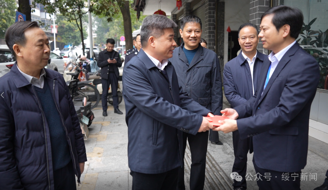 1月23日,县委书记佘芝云带领县四大家领导走访慰问春节期间坚守在岗位上的机要、城管(环卫)、应急、公安(交警)、公路建设养护、供电、供水、信访等行业一线干部职工,向大家致以节日的祝福和新春的问候。县领导夏贤钦、唐枝、石亮明、梁乐高、袁玲、向国胜、陵建华、孙红辉、袁伟娜参加慰问。 在县委机要局和县政府办机要组,佘芝云亲切慰问了值班人员,为他们送上新年祝福。他指出,机要工作直接关系到党和国家根本利益,关系国家安全,大家要牢记职责使命,用忠诚和奉献把工作做得更细、更实,确保党和政府指示政令绝对安全、绝对畅通。 在县城市管理综合行政执法局,佘芝云对城管队员和环卫工人在过去一年里维护城市秩序、优化市容环境等方面取得的成绩给予充分肯定,勉励大家在新的一年再接再厉,继续发扬昂扬奋进的精神面貌,为绥宁城市管理高质量发展再立新功。他指出,春节是万家团聚的时刻,也是城管队员、环卫职工坚守岗位、辛勤付出的时候,希望大家科学合理安排好值班值守,有力有序做好城市管理、环卫保洁等工作。