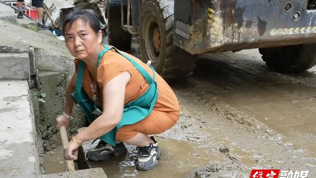 草寨村村民肖兰英,一大早就与前来帮忙的党员干部一同清理街道的淤泥,尽管淤泥厚重有异味,清理工作十分辛苦,但她干劲十足,脸上始终带着坚定的神情。肖兰英表示:“只要大家齐心协力,就没有克服不了的困难,家园一定能尽快恢复往日的模样。”