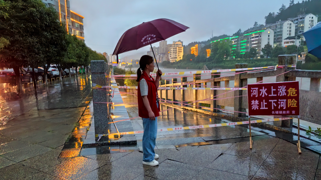 长铺镇构建起“党委统揽-班子驻点-社区包片-党员联户”的四级联动机制。120名党员干部24小时在岗值守,不分昼夜紧盯天气变化、实时水位及风险隐患,针对全镇8处地质灾害隐患点,强化实时动态监测,并在危险区域布设防汛卡点警戒线46道,新增设警示标牌108块,紧急转移危险区域群众4户10人。