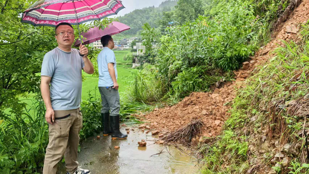 鹅公岭侗族苗族乡领导班子成员带头包保重点区域,驻村干部分村值守,对全乡16处地质灾害隐患点实行24小时巡查监测。各村党组织书记带领党员组成11支“党员先锋队”,用脚步丈量责任,蹚水摸排险情,在风雨中筑起了一道坚不可摧的“红色防线”。 6月23日凌晨,东山侗族乡阳溪村后山因雨水渗透引发山体塌方,约300立方米的土石倾泻而下,阻断进村道路并威胁着附近3户居民的安全。接到险情报告后,该乡相关负责人带队迅速抵达现场,立即设置警戒线,调配挖掘机清除障碍,挨家挨户排查房屋安全,将群众临时转移至安全区域。“塌方发生后,党员干部10分钟就到了现场,帮我们搬东西、守路口,心里踏实多了。”村民杨大爷感慨道。