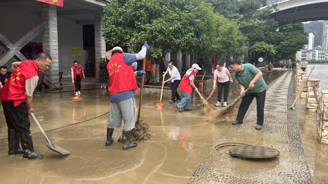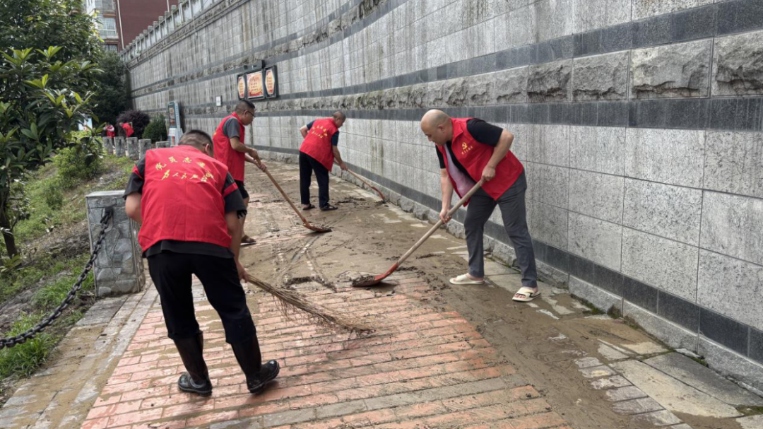 汛后速清,恢复家园展新颜 洪水退去,长铺镇党员干部克服连续作战的疲劳,继续奋战在灾后修复最前线,开展灾情统计、排障除险、清淤整治等工作,努力降低强降雨对群众带来的不利影响。暴雨后,镇党委迅速组织镇社干部第一时间实地查看河堤、道路及房屋受损情况,进行全方位摸排,特别是对地质灾害隐患点、坡体进行重点巡查,确保全面掌握灾情险情。针对临河商铺和游步道淤泥遍地、漂浮物堆积的情况,镇党委迅速组织,各党支部主动作为,发动党员带动群众开展全面清淤行动。通过集中清理,保障了群众生产生活秩序,恢复了环境整洁美观。“我家房屋门口淤泥好多,正愁怎么清理,党员们就来了!”长铺老街李大姐感动地说。
