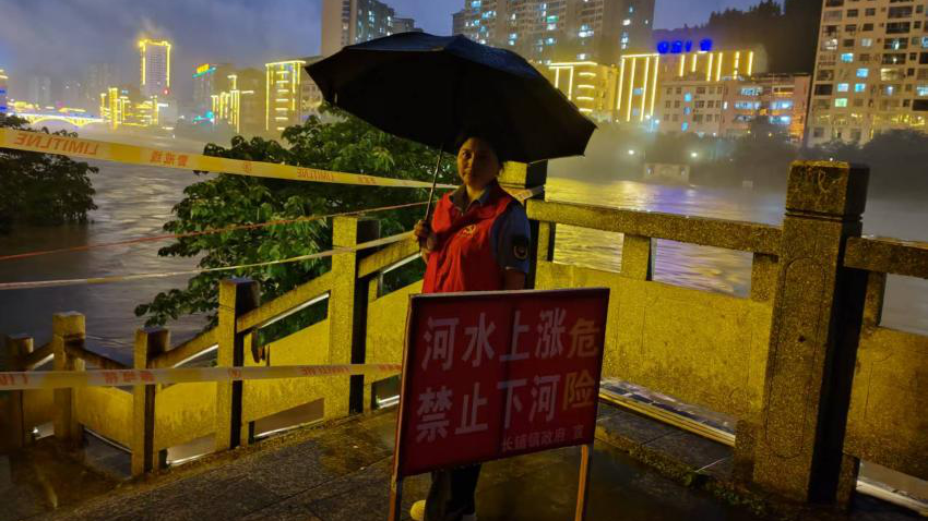 汛中快应,筑牢生命防护墙 6月20日16:00时,绥宁县启动防汛IV级应急响应,长铺镇立即启动应急预案,镇驻点干部全部下沉社区,110名党员干部24小时轮班值守、巡逻巡查,密切监测天气变化、水位波动及风险隐患。6月22日,巫水河上游绿洲电站闸门开度超过10米,预计将淹没两岸游步道,长铺镇迅速劝离沿线群众,布设防汛卡点警戒线46处,每处安排2名镇社干部、志愿者值守,30分钟内人员和物资全部到位,聚力打造防汛“铜墙铁壁”。同时,党员干部与片组邻“三长”深入隐患点,逐户敲门动员危险区居民撤离,全镇组织转移群众20户47人。其中,虾子溪社区党总支书记苏再荣连续奋战20小时,深夜敲响12户群众家门,引导他们安全撤离并妥善安置。