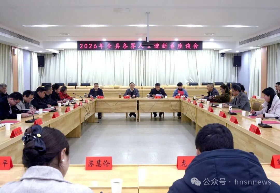 春潮启新岁,聚力谋新篇。2月6日下午,绥宁县2026年各界人士迎新春座谈会在县委四楼会议室召开,县领导夏贤钦、唐枝、陵建华、唐艳与全县无党派人士、非公经济人士、新的社会阶层人士、宗教人士、侨眷、台属及教育、卫生、文旅、交通、武警、消防等各界人士代表欢聚一堂,共贺新春佳节,共话绥宁发展,共商发展大计。