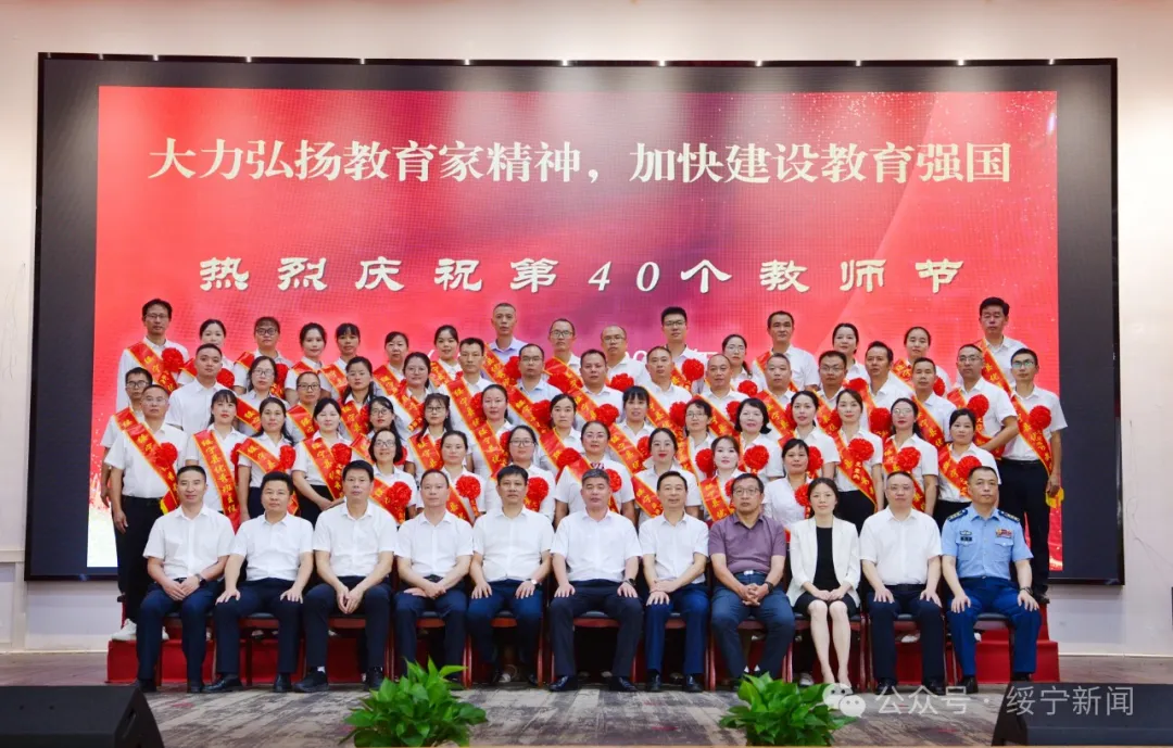 大会对获得2024年度绥宁县“优秀校长”奖、“优秀教师”奖、“优秀班主任”奖、高中教育教学质量奖、高中教育教学质量优秀单位奖、高中教育教学质量优秀学生奖的先进个人和先进单位进行了颁奖,进一步激励广大教师和教育工作者献身教育事业。会议紧紧围绕“大力弘扬教育家精神,加快建设教育强国”主题,着力在全县上下营造尊师重教的良好氛围。 佘芝云指出,教育不仅是民族振兴、社会进步的重要基石,更是提升国民素质、促进人类全面发展的根本途径。全县上下要进一步突出教育优先发展战略地位,直面群众对“上好学”的强烈呼声,汇聚办好教育的强大力量,全力让孩子们在家门口就能享受优质教育。 佘芝云强调,要坚定发展信心,坚守初心、久久为功,让绥宁教育发展更有“速度”,以“坚定支持”的态度、“舍我其谁”的担当、“干则必成”的信念推动教育加速发展。要补齐质量短板,树立日日精进的意识,让绥宁教育发展更有“高度”,在持续改善学校“硬件”设施的同时,通过不断提升校长综合素质,加强建设高素质教师队伍,努力营造安全的校园环境,健全完善科学的评价体系等方式,办好人民满意的教育。要加强党的领导,凝聚同题共答的合力,让绥宁教育发展更有“力度”,强化党建引领、各方协同、氛围营造,充分利用各方面资源、调动各方面力量推动教育发展,不断营造教育从优从先的良好生态,以更高质量的教育为建设“三个绥宁”增光添彩、贡献力量。 夏贤钦要求,全县各级各部门要深入学习贯彻习近平总书记关于教育的重要论述,全面落实党的二十大、二十届三中全会等关于教育工作的部署要求,推动全县教育事业发展再上新台阶。全县教育系统要始终坚持德育为先、能力为重、全面发展、面向人人的办学方针,以优先发展为保障、优质育人为核心、改革创新为动力,认真谋划教育事业发展,全面深化教育领域改革,着力提升教育办学质量。广大教师要始终把传承知识、塑造灵魂、实践理想作为最高追求,以更加崭新的姿态,更加饱满的热情,更加务实的作风,携手并肩再创教育事业新辉煌。 会后,佘芝云率队前往芙蓉学校进行慰问,夏贤钦率队在绥宁县第一中学进行慰问。
