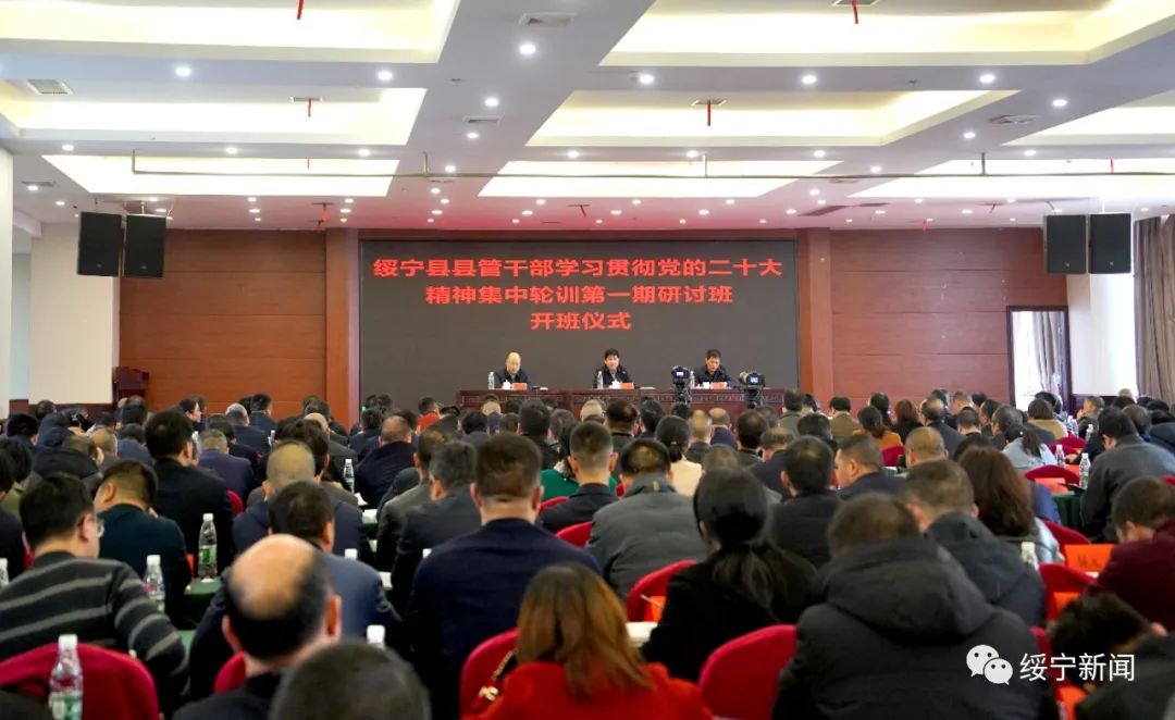 3月22日,为期3天的绥宁县县管干部学习贯彻党的二十大精神集中轮训第一期研讨班开班。县委书记佘芝云作动员讲话,他强调,要进一步把思想行动统一到党的二十大精神上来,推动“关键少数”先学一步、深学一层,示范引领全县各级各部门及时跟进,在全面学习、全面把握、全面落实上下功夫,奋力推动党的二十大确定的各项任务在绥宁付诸行动、取得成效,为“三个绥宁”建设作出新的更大贡献。县委副书记、统战部部长唐枝主持开班仪式,县委常委、组织部部长周楚舜参加。