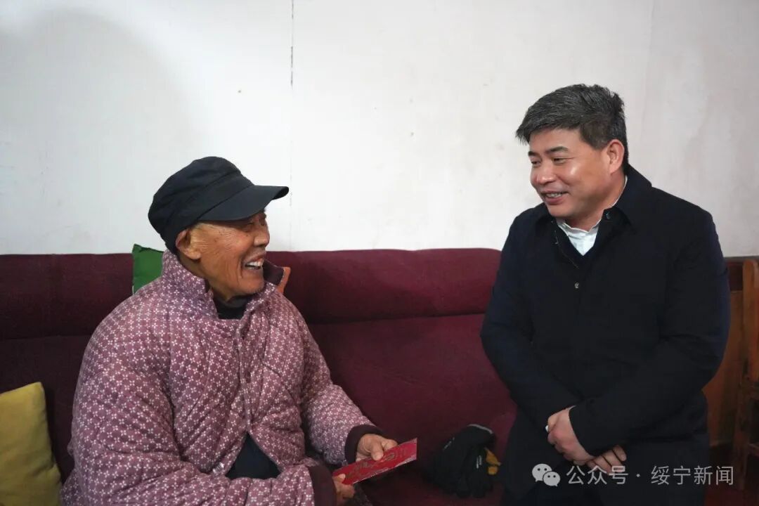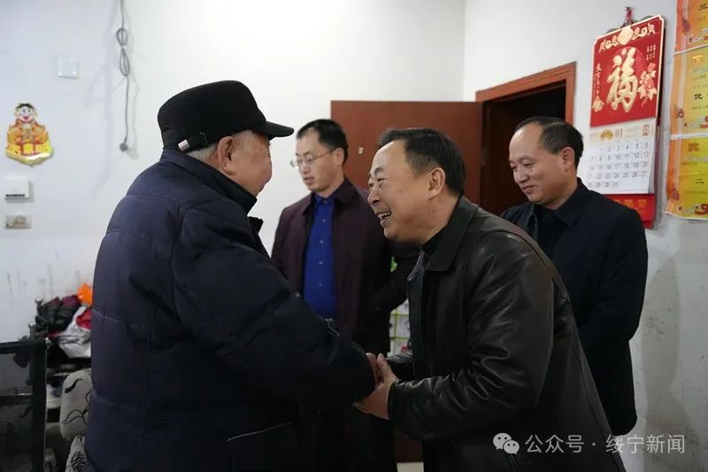 佘芝云春节前走访慰问老干部 又是一年春将至,最是岁寒情暖时。1月25日上午,新春佳节即将来临之际,县委书记佘芝云走访慰问离退休老干部,为他们送去党和政府的浓浓温暖与深切关怀,并通过他们向全县老干部致以诚挚的问候和新春的祝福。县委常委、组织部部长周楚舜参加走访慰问。 “春节快到了,我代表县委、县政府来看望您,提前祝您新年快乐、健康长寿!”带着美好祝福,佘芝云一行先后来到苏进荣、贺兼福、钟成瑶、黄民清等4位离退休老干部的家中。每到一处,佘芝云都亲切地与老干部们促膝交谈,回忆往昔工作经历、闲叙温馨家常,关切询问他们的身体健康情况以及生活状况,认真倾听他们的心声,代表县委、县政府对广大离退休老干部长期以来为绥宁经济社会稳定发展作出的贡献表示感谢。 慰问中,佘芝云强调,老干部是我县建设和发展的宝贵财富,是深化改革、促进发展、维护稳定的重要力量。相关部门要高度重视老干部工作,时刻把他们的冷暖放在心上,围绕老干部的需求,全心全力做好服务工作,让他们真切感受到党和政府的温暖,不断提升他们的获得感、幸福感、安全感。同时,希望老同志们在保重身体的同时,一如既往地关心和支持县委、县政府工作,继续为绥宁经济社会高质量发展建言献策,为“三个绥宁”建设贡献更多智慧和力量。