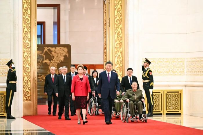 习近平指出,75年来,世界上有很多与中国人民志同道合、风雨同舟的老朋友、好朋友,今天被授予“友谊勋章”的迪尔玛·罗塞芙女士就是其中的杰出代表。中国人民永远不会忘记那些为中国发展、增进中国人民同各国人民友谊作出突出贡献的国际友人。中国人民愿携手世界各国人民,维护世界和平,促进共同发展,推动构建人类命运共同体,开创人类更加美好的未来。 习近平强调,新的画卷需要我们共同描绘,新的历史需要我们共同开创。要锚定目标、勠力同心、开拓进取,共同谱写人民共和国更加绚丽精彩的新篇章。