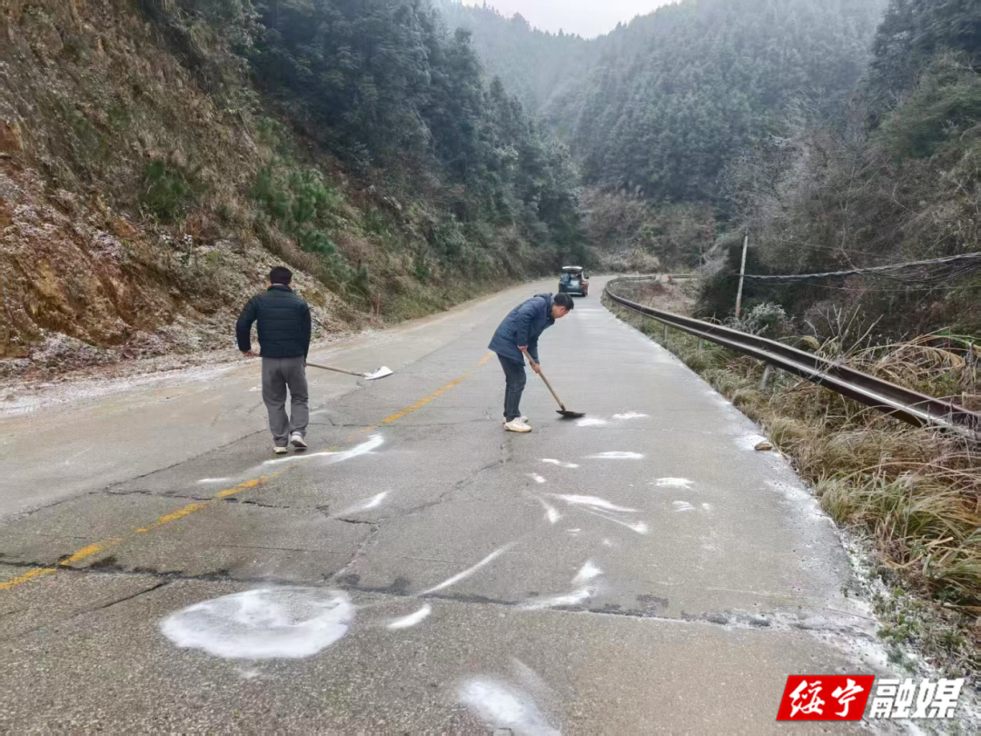 河口苗族乡迅速组织党员干部、返乡大学生开展破冰除雪志愿行动。大家手持铁锹、扫帚清理路面冰雪,在急弯、陡坡路段设置安全警示牌6处。志愿者们还主动搀扶行动不便的老人,叮嘱防滑避险,用细致行动传递寒冬里的浓浓温情。